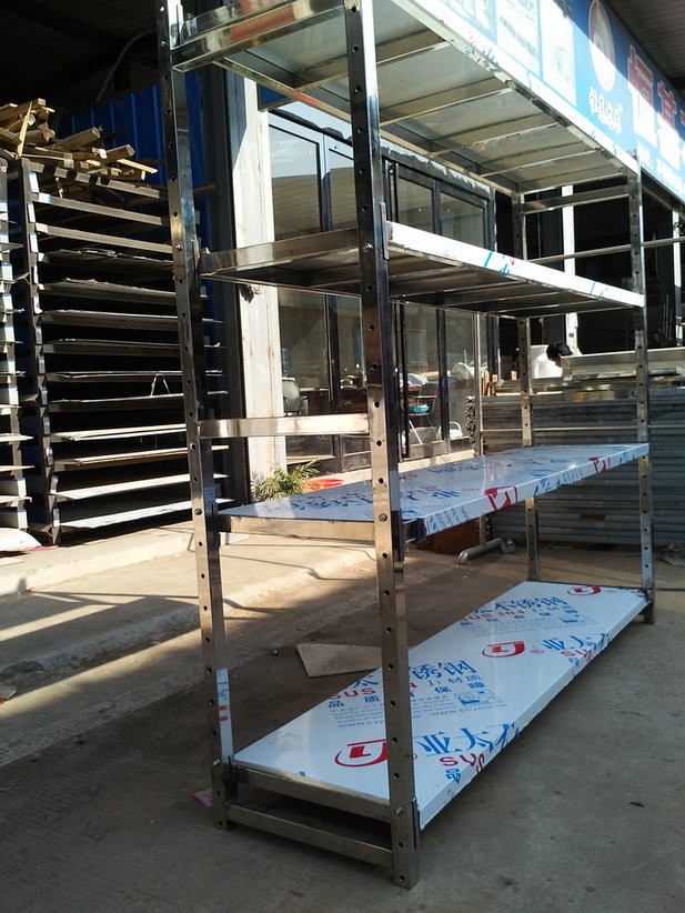 不銹鋼貨架指用于貨物存儲(chǔ)、展示的各種不銹鋼器具。為了適應(yīng)新的形勢(shì)或充分利用空間,便于貨物區(qū)分,不銹鋼貨架提高空間使用率,需要對(duì)營(yíng)業(yè)廳或倉庫進(jìn)行置辦和調(diào)整貨架、柜臺(tái)等主要的商品陳列器具。使?fàn)I業(yè)廳或倉庫的面貌煥然一新。
